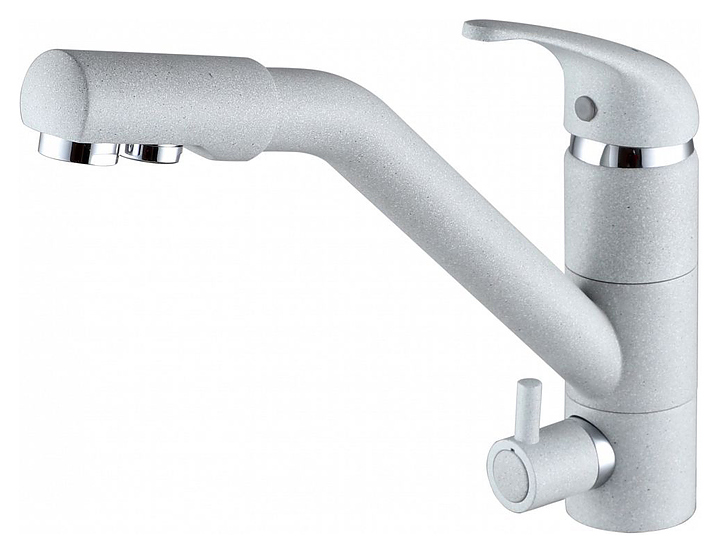Смеситель Paulmark Hessen He213017-310 предназначен для подачи горячей и холодной воды в кухонных помещениях. Модель имеет дополнительный излив для питьевой воды и аэратор, который уменьшает шум и снижает количество брызг. Керамический картридж обеспечивает плавный ход рычага смесителя, контроль и точность при выборе напора и температуры воды. Изделие выполнено из латуни, отличающейся прочностью, долговечностью и устойчивостью к перепадам температур. В комплект поставки входят крепления, аэратор и гибкая подводка. Дополнительные характеристики: