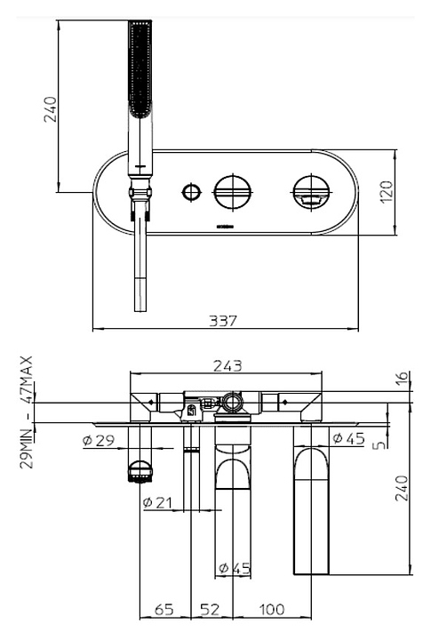 Смеситель для ванны встраиваемый Bossini Apice Z00555.073 с гарнитуром
