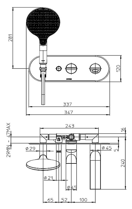 Смеситель для ванны встраиваемый Bossini Apice Z00557.073 с гарнитуром