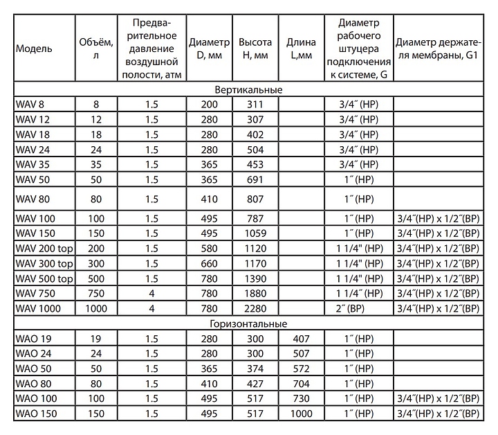 Гидроаккумулятор Wester WAV 8 л