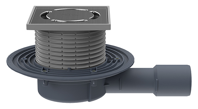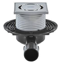 Трап регулируемый HL 90 предназначен для приема и отведения в канализационную сеть сточных вод с поверхности пола балконов и террас. Трап оснащен решеткой, снимаемым насадным подрамником и обжимным фланцем. Корпус и подрамник выполнены из прочного пластика, решетка - из нержавеющей стали. Дополнительные характеристики: