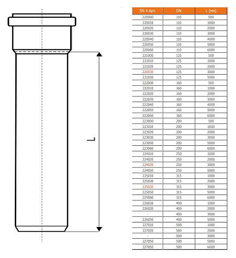 Труба безнапорная с раструбом Ostendorf KGEM SN4 Дн 200х4,9, 3 метра