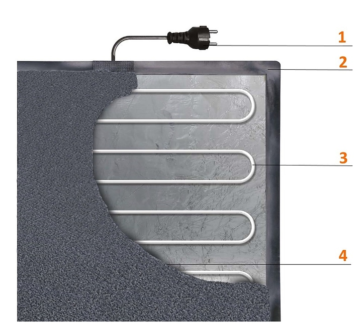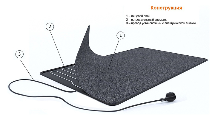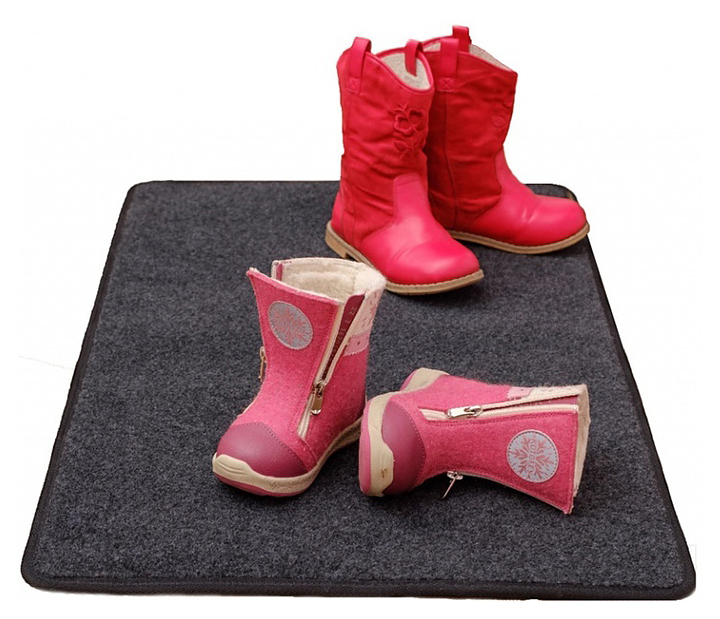 Коврик подогреваемый Теплолюкс Carpet, серый предназначен для деликатной сушки промокшей после улицы обуви и обогрева ног. Модель состоит из лицевого слоя, нагревательного элемента, подложки и привода установочного с электрической вилкой. Лицевой слой изготовлен из полиамида, оболочка - из ПВХ Особенности: