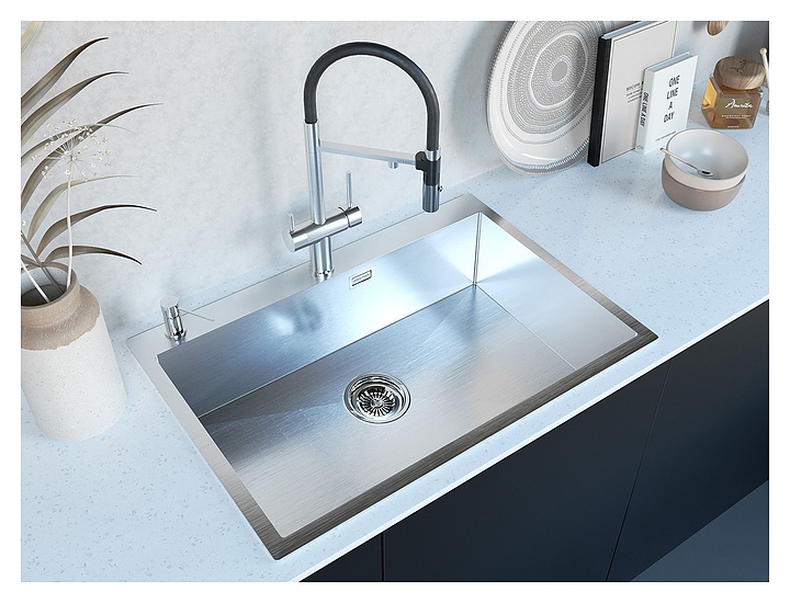 Мойка Paulmark Saar PM807551-BS предназначена для рационального планирования рабочего места на кухне. Модель оснащена широкой задней поверхностью для размещения смесителя и аксессуаров. Мойка устанавливается сверху, снизу или в один уровень со столешницей. Изделие выполнено из нержавеющей стали, которая отличается надежностью, ударопрочностью и стойкостью к износу. В комплект поставки входят крепления, сливная арматура, сифон, слив-перелив и корзинчатый вентиль. Дополнительные характеристики: