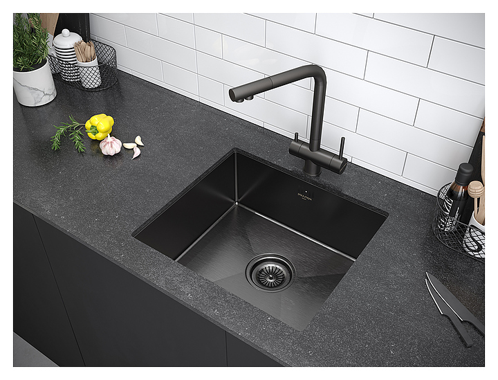 Мойка кухонная Paulmark Lassan PM304444-GM вороненая сталь