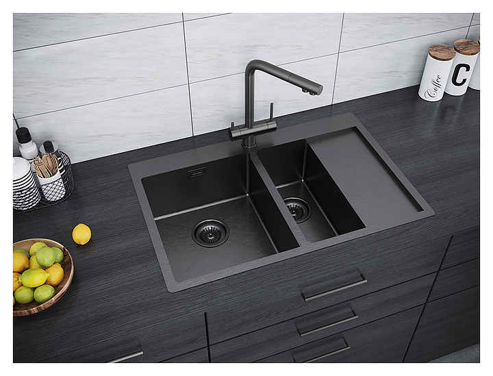 Мойка кухонная Paulmark Union PM537851-GML вороненая сталь, левая