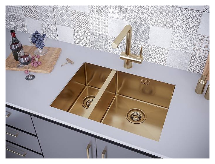 Мойка Paulmark Annex PM545944-BG предназначена для рационального планирования рабочего места на кухне. Вместительная чаша большого размера и небольшая дополнительная чаша расположены параллельно друг другу. Модель устанавливается сверху, снизу или в один уровень со столешницей. Изделие выполнено из нержавеющей стали, которая отличается надежностью, ударопрочностью и стойкостью к износу. В комплект поставки входят крепления, сливная арматура, сифон, сливы-переливы и корзинчатый вентиль. Дополнительные характеристики: