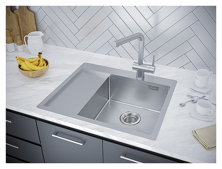 Правосторонняя мойка Paulmark Alster PM825951-BSR предназначена для рационального планирования рабочего места на кухне. Модель оснащена широкой задней поверхностью с готовым отверстием для размещения смесителя. Крыло-сушилка служит подставкой для посуды и продуктов. Мойка устанавливается сверху или в один уровень со столешницей. Изделие выполнено из нержавеющей стали, которая отличается надежностью, ударопрочностью и стойкостью к износу. В комплект поставки входят крепления, сливная арматура, сифон, слив-перелив и корзинчатый вентиль. Дополнительные характеристики:
