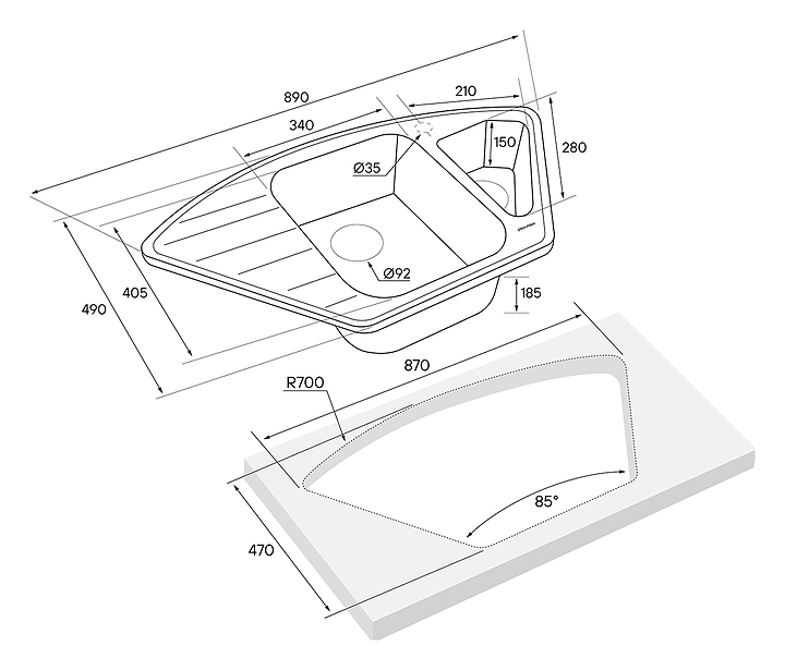 Мойка Paulmark Wiese PM529050-GRM предназначена для рационального планирования рабочего места на кухне. Модель может быть установлена как в обычный, так и угловой шкаф, обеспечив максимальный комфорт для процесса работы. Мойка оснащена основной и дополнительной чашами, а также крылом для сушки посуды или размещения продуктов и двойным телескопическим сифоном с круглым переливом TRUST PM1023-CR, благодаря уникальной конструкции которого под кухонной мойкой освобождается пространство для бытовых принадлежностей, а также предусмотрена возможность подключения стиральных и посудомоечных машин. Изделие выполнено из кварцевого композита, который отличается высокой прочностью, устойчивостью к царапинам, долговечностью, безопасностью и экологичностью, а также имеет гладкую поверхность без пор, гарантирующую гигиеничность. В комплект поставки входят крепления, сливная арматура, сифон, слив-перелив и корзинчатый вентиль. Дополнительные характеристики: