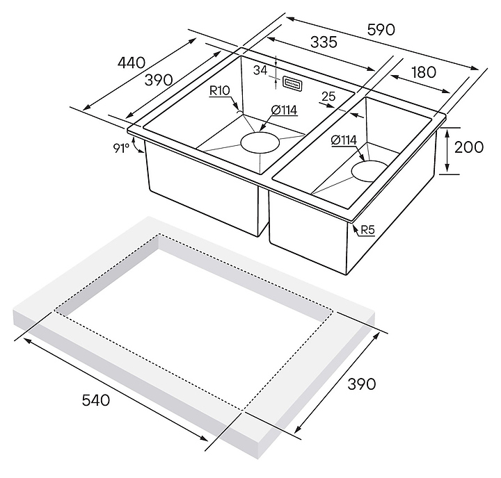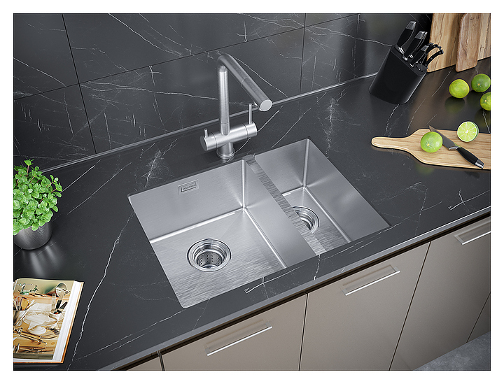 Мойка Paulmark Annex PM545944-BSL предназначена для рационального планирования рабочего места на кухне. Вместительная чаша большого размера и небольшая дополнительная чаша расположены параллельно друг другу. Модель устанавливается сверху, снизу или в один уровень со столешницей. Изделие выполнено из нержавеющей стали, которая отличается надежностью, ударопрочностью и стойкостью к износу. В комплект поставки входят крепления, сливная арматура, сифон, сливы-переливы и корзинчатый вентиль. Дополнительные характеристики: