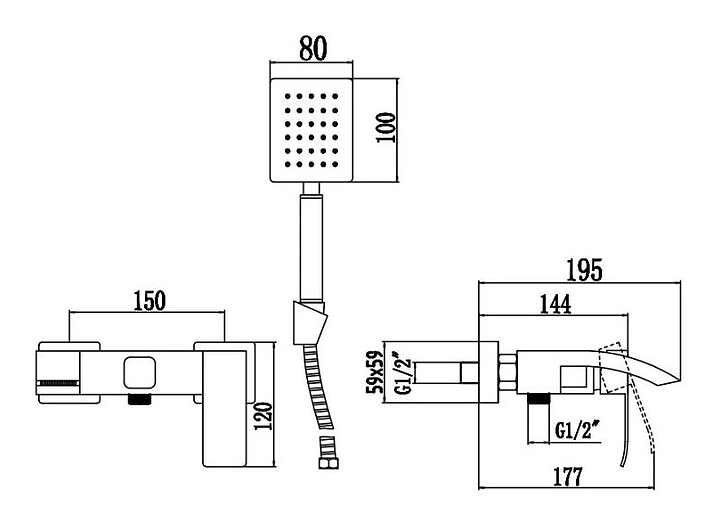 Смеситель для ванны с душем Fmark FS8624 фиксированный излив