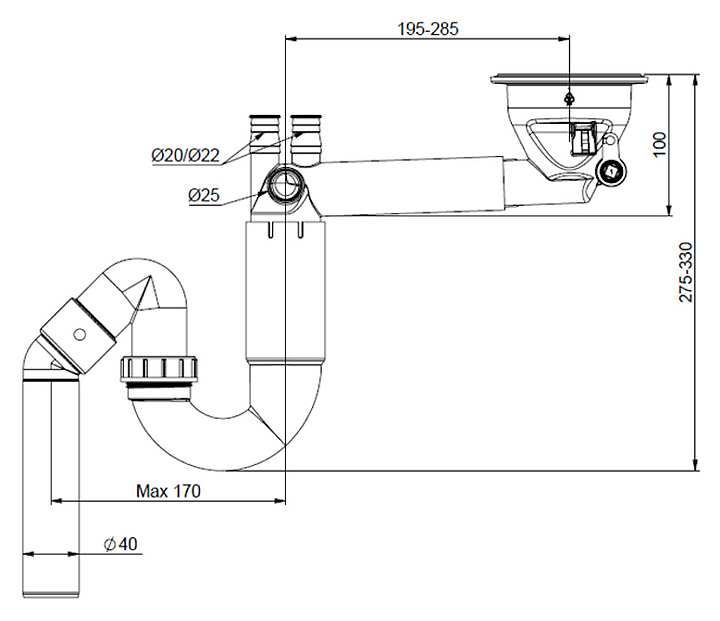 Сифон для кухонной мойки PREVEX P-loc PL1-R9CR5-SANT-01 автомат