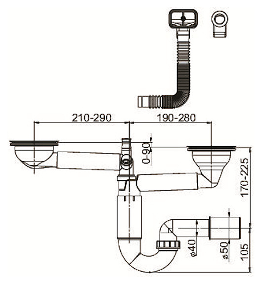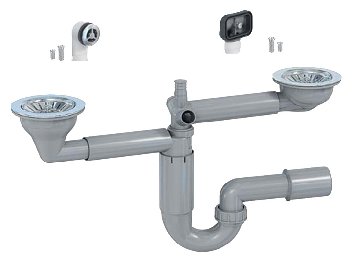 Сифон для кухонной мойки PREVEX P-loc PL2-D9C45-SANT-01 двойной