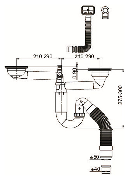Сифон для кухонной мойки PREVEX P-loc PL2-D9CF5-SANT-01 двойной
