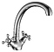 Смеситель Decoroom DR54029 предназначен для использования на кухне для подачи горячей и холодной воды. Модель оснащена удобными вентилями и высоким поворотным изливом. Изделие выполнено из металла, который отличается прочностью, долговечностью и устойчивостью к перепадам температур. Особенности: