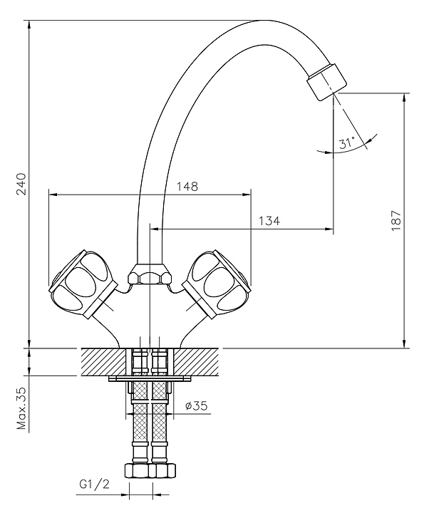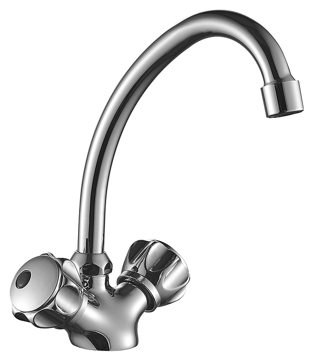 Смеситель Decoroom DR50028R предназначен для использования на кухне для подачи горячей и холодной воды. Модель оснащена удобными вентилями и высоким поворотным изливом. Изделие выполнено из металла, который отличается прочностью, долговечностью и устойчивостью к перепадам температур. Особенности: