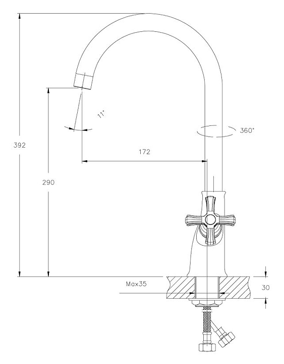 Смеситель Decoroom DR47028 предназначен для использования на кухне для подачи горячей и холодной воды. Модель оснащена удобными вентилями и высоким поворотным изливом. Изделие выполнено из металла, который отличается прочностью, долговечностью и устойчивостью к перепадам температур. Особенности: