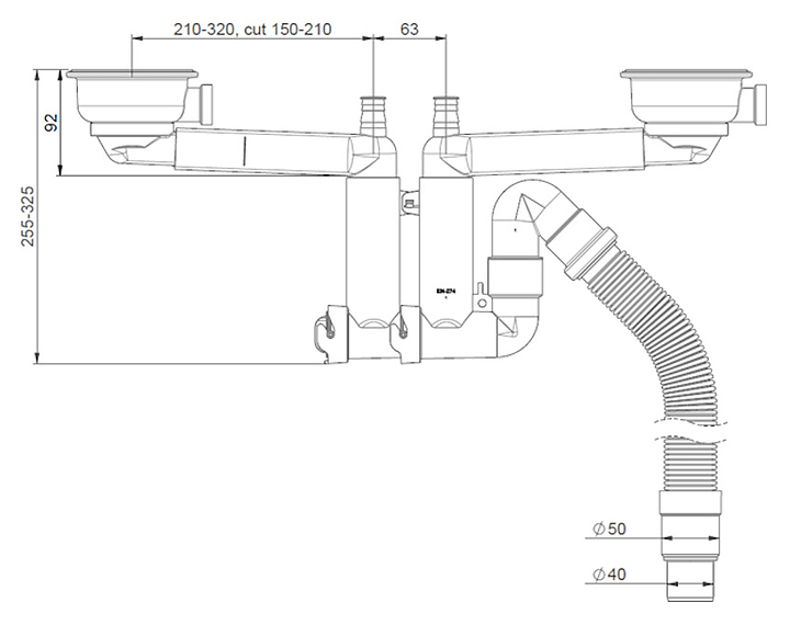 Сифон для кухонной мойки PREVEX Smartloc 42K13923 двойной
