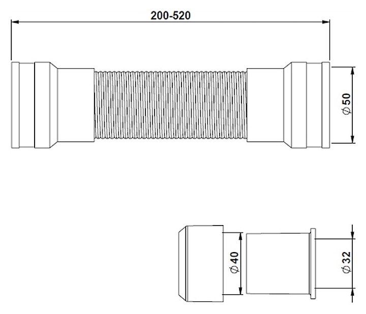 Гофра для сифона к кухонной мойке PREVEX 3130011 с переходниками d50/40/32