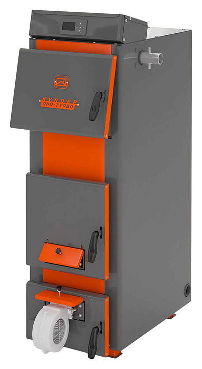Полуавтоматический отопительный котел Теплодар Куппер Про Турбо-42 используется для обогрева частных домов, гаражей, дач и других помещений, оборудованных системой водяного отопления с естественной или принудительной циркуляцией теплоносителя. Модель оснащена развитой поверхностью водяной рубашки и водотрубным теплообменником, обеспечивающими теплосъем со всех поверхностей топки. Корпус котла выполнен из качественной конструкционной стали, боковые поверхности корпуса водяной рубашки теплоизолированы базальтовым картоном и облицованы декоративными панелями с полимерным покрытием, дверные ручки - из жаростойкого силикона. В комплект поставки входят кочерга, шуровка и поворотный шибер. Особенности: