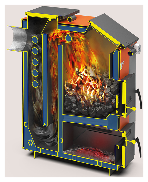 Отопительный котел Теплодар Куппер Эксперт-45 используется для обогрева частных домов, гаражей, дач и других помещений, оборудованных системой водяного отопления с принудительной циркуляцией теплоносителя, как самостоятельный источник тепловой энергии или как дополнение к существующим системам отопления. Модель имеет двухшахтную конструкцию с большой площадью контакта с горячими дымовыми газами, оснащена развитой поверхностью водяной рубашки и водотрубными теплообменниками. Корпус котла выполнен из качественной конструкционной стали, боковые поверхности корпуса водяной рубашки теплоизолированы базальтовым картоном и облицованы декоративными панелями с полимерным покрытием. В комплект поставки входят кочерга, шуровка и поворотный шибер. Особенности: