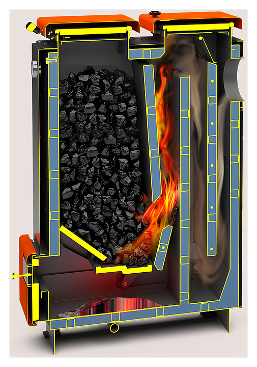 Отопительный котел Теплодар Куппер Карбо-26 (2.0) используется для обогрева частных домов, гаражей, дач и других помещений, оборудованных системой водяного отопления с принудительной циркуляцией теплоносителя. Модель имеет шахтную конструкцию с зоной горения и зоной теплообмена с развитой трехходовой схемой теплообменника. Корпус котла выполнен из качественной конструкционной стали, боковые поверхности корпуса водяной рубашки теплоизолированы базальтовым картоном и облицованы декоративными панелями с полимерным покрытием, колосник - из чугуна. В комплект поставки входят съемная засыпная воронка, кочерга, шуровка и поворотный шибер. Особенности: