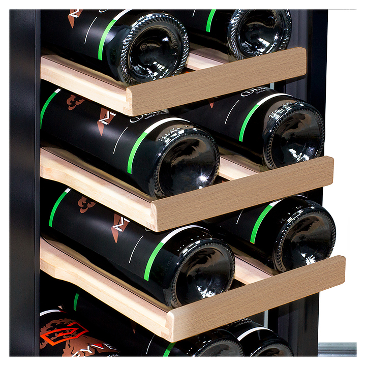 Винный шкаф MEYVEL MV19-KST1 предназначен для демонстрации, хранения и создания оптимальных условий для сохранения всех вкусовых свойств вина в бутылках на предприятиях общественного питания, торговли, в барах, ресторанах, специализированных магазинах, частных домах или квартирах. Модель оснащена сенсорной панелью управления, электронным термостатом, демонстрационным и панорманым освещением. Корпус и ручка выполнены из стали, дверная рама - из бесшовной нержавеющей стали, дверь - из тройного стекла с защитой от ультрафиолетовых лучей, полки - из массива бука. В комплект поставки входят петли для перенавешивания двери. Особенности: