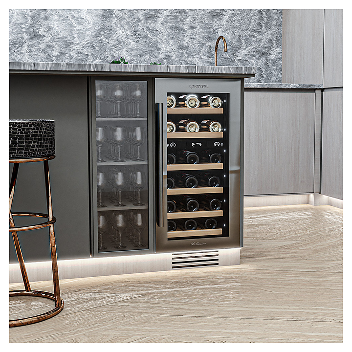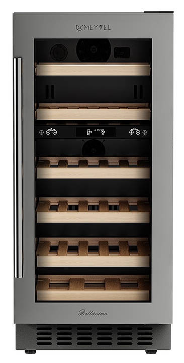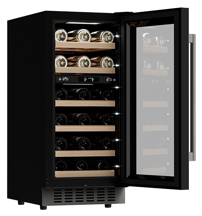 Винный шкаф MEYVEL MV28-KST2 предназначен для демонстрации, хранения и создания оптимальных условий для сохранения всех вкусовых свойств вина в бутылках на предприятиях общественного питания, торговли, в барах, ресторанах, специализированных магазинах, частных домах или квартирах. Модель оснащена сенсорной панелью управления, электронным термостатом, белым демонстрационным и панорманым освещением. Корпус и ручка выполнены из стали, дверь - из стальной рамы и тройного стекла с защитой от ультрафиолетовых лучей, полки - из массива бука. В комплект поставки входят петли для перенавешивания двери. Особенности: