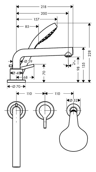 Смеситель для ванны и душа на борт ванны Hansgrohe Talis S 72417000 на 3 отверстия