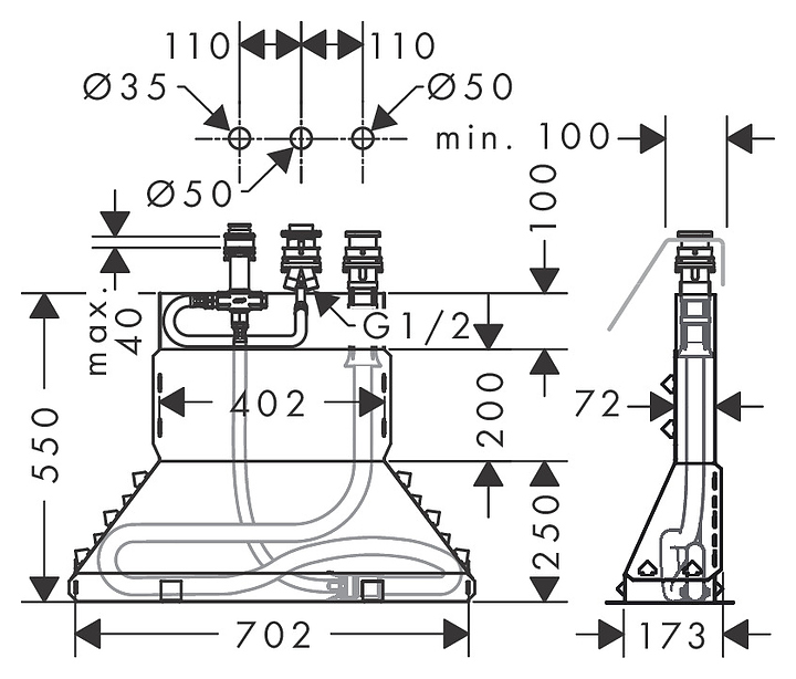 Скрытая часть смесителя на край ванны Hansgrohe 13437180 на 3 отверстия