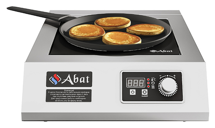 Индукционная плита Abat КИП-1Н-5,0 предназначена для приготовления различных блюд в наплитной посуде на предприятиях общественного питания и торговли. Модель оснащена быстросъемным моющимся жироулавливающим фильтром из нержавеющей стали, сетевым кабелем и регулируемыми по высоте ножками. Корпус выполнен из высококачественной нержавеющей стали с рабочей поверхностью из стеклокерамики. Рекомендуется использовать специальную посуду из материала с подходящими характеристиками, который бы эффективно поглощал энергию магнитного поля. Может использоваться посуда из нержавеющей стали или алюминия с ферромагнитным дном, чугунная посуда. Эксплуатация плиты допускается при температуре окружающего воздуха от +1ºС до +40ºС, относительной влажности до 65%. Особенности: