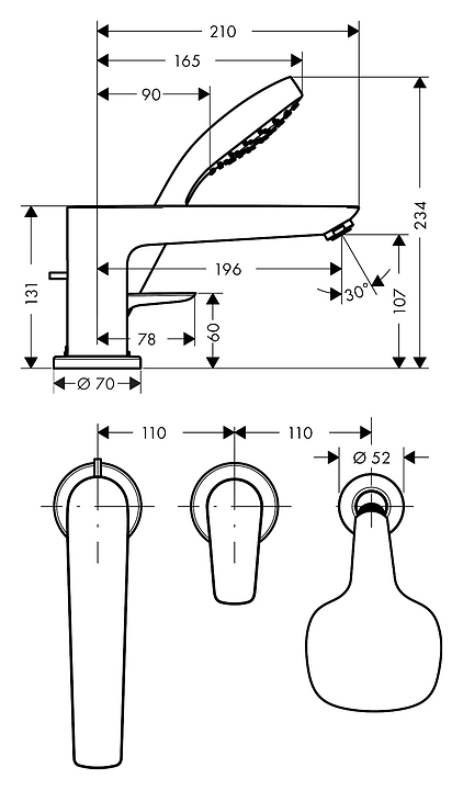 Смеситель для ванны и душа на борт ванны Hansgrohe Talis Е 71731000 на 3 отверстия
