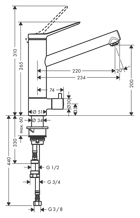 Смеситель для кухни Hansgrohe Zesis M33 74808000 с запорным вентилем