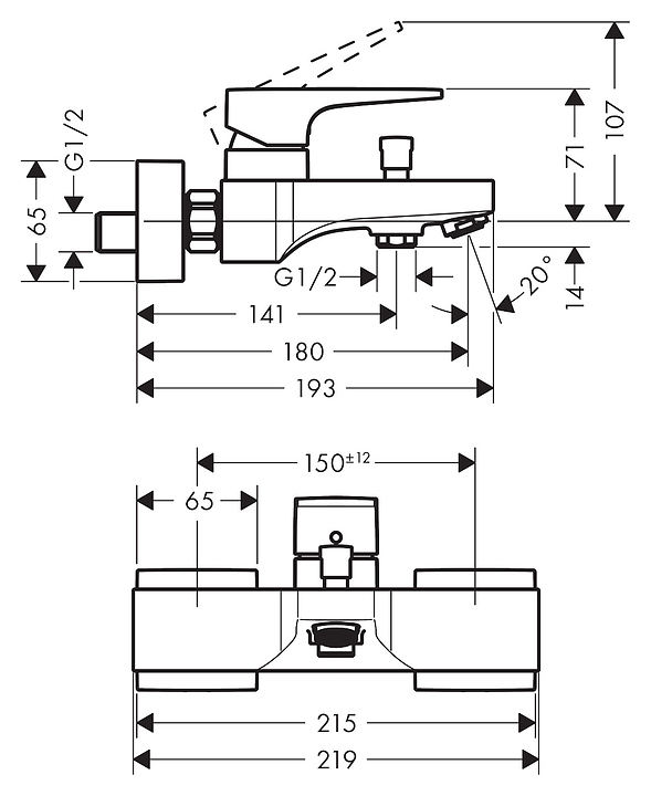 Смеситель для ванны и душа Hansgrohe Metropol 32540990