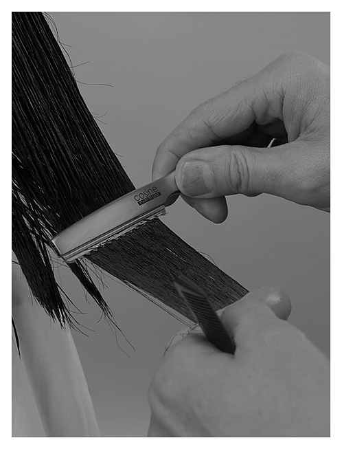 Парикмахерская бритва Mizutani Cosine Rubber используется в парикмахерских, барбершопах, салонах красоты, а также в домашних условиях для стрижки волос с использованием со стандартных безопасных филировочных лезвий японской компании FEATHER Safety Razor Co. LTD. Модель оснащена удобной рукояткой с кольцом для фиксации на пальце. Цельнолитой корпус выполнен из высококачественной нержавеющей стали с полированной глянцевой поверхностью и черной нескользящей резиновой накладкой. Особенности: