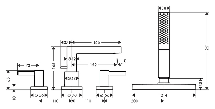 Смеситель для ванны и душа на борт ванны Hansgrohe Finoris sBox 76444000 на 4 отверстия
