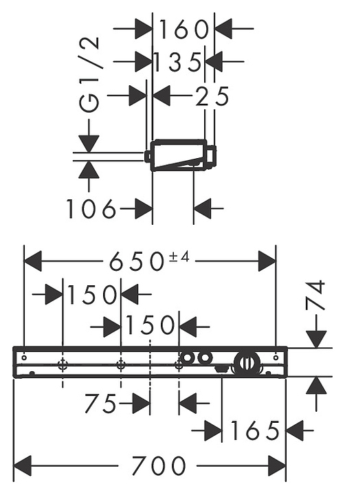 Смеситель для душа термостат Hansgrohe ShowerTablet Select 13184400 для 2 потребителей