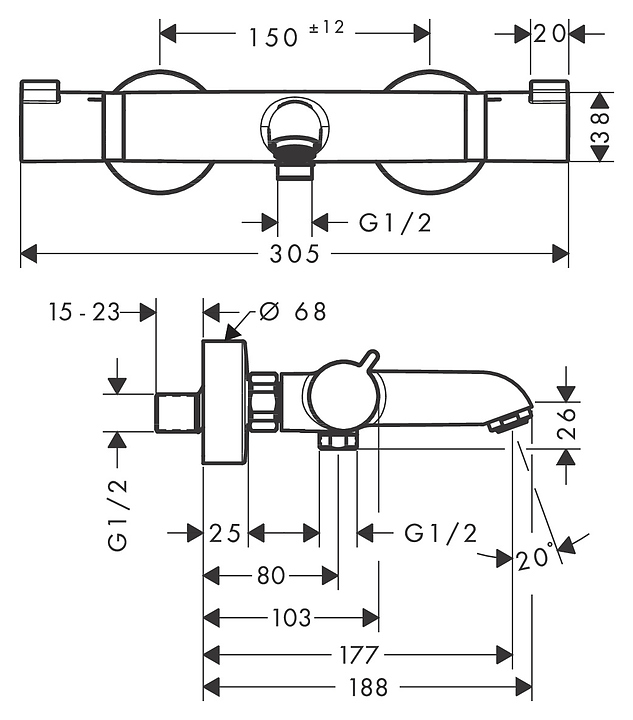 Смеситель для ванны и душа термостат Hansgrohe Ecostat Comfort 13114000