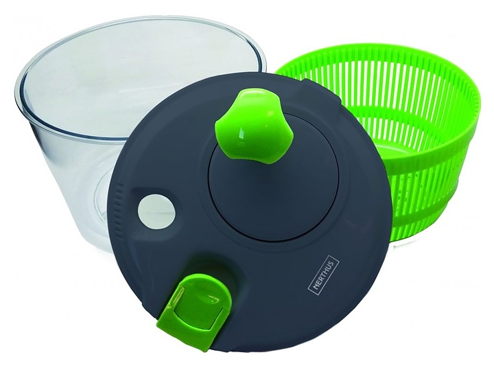 Сушилка для зелени Vin Bouquet FIH 018 используется на предприятиях общественного питания и торговли для сушки и удаления воды из салатов, шпината, зелени и других нарезанных листовых овощей. Модель оснащена внешним контейнером и внутренней корзиной с сеткой и крышкой с ручкой, при помощи которой можно регулировать скорость сушки. Изделие выполнено из ABS-пластика. Особенности: