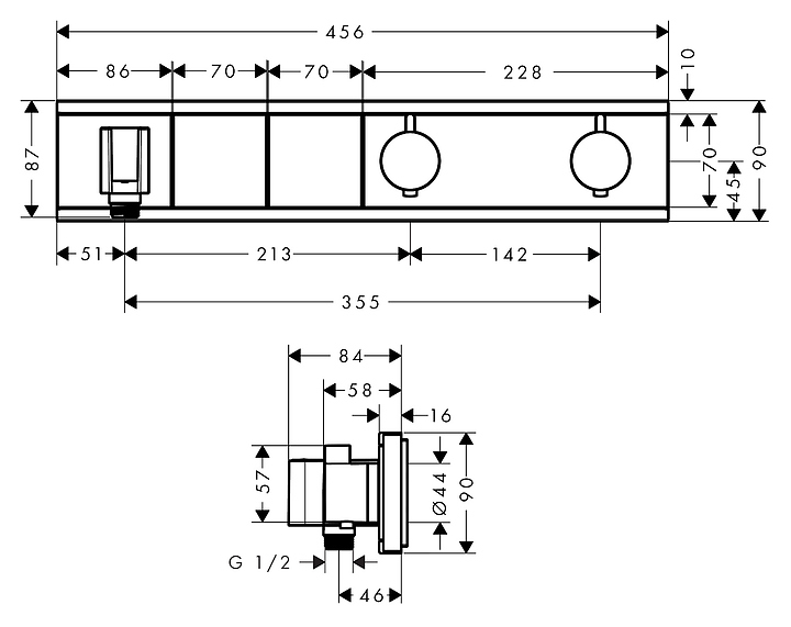 Смеситель для душа встраиваемый термостат Hansgrohe RainSelect 15355600 для 2 потребителей