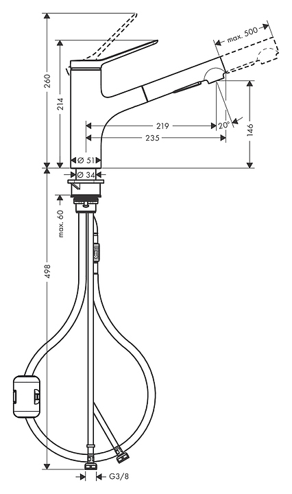 Смеситель для кухни с вытяжным изливом Hansgrohe Zesis M33 74800000