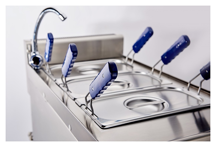 Электроварка Abat ЭВК-40/1Н предназначена для варки всех видов макаронных изделий, пельменей, вареников, овощей, корнеплодов и яиц на предприятиях общественного питания и торговли. Модель оснащена регулируемыми по высоте ножками. Корпус выполнен из нержавеющей стали. Дополнительные характеристики: