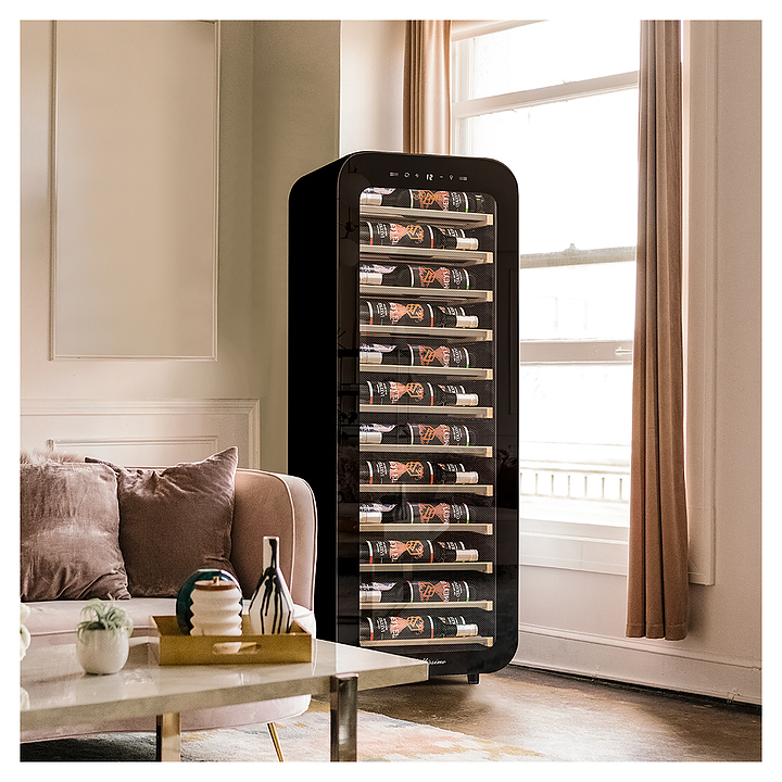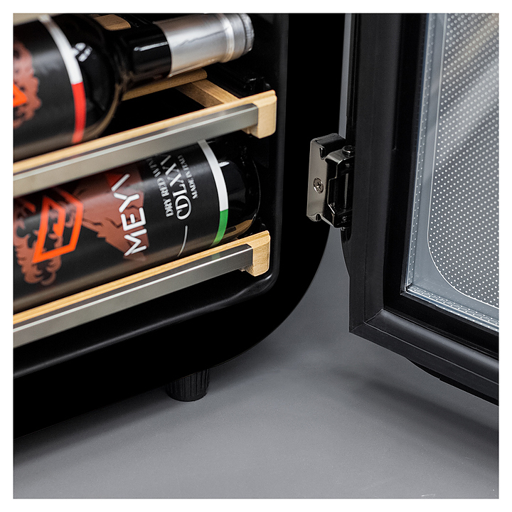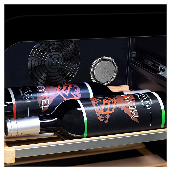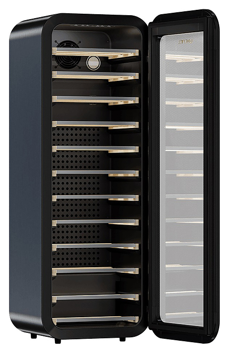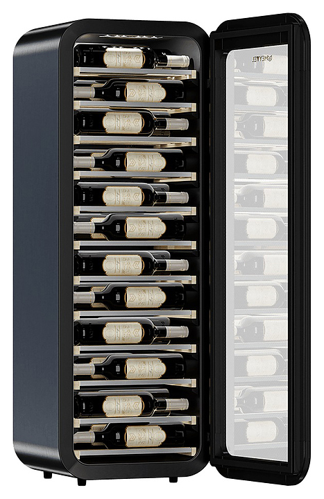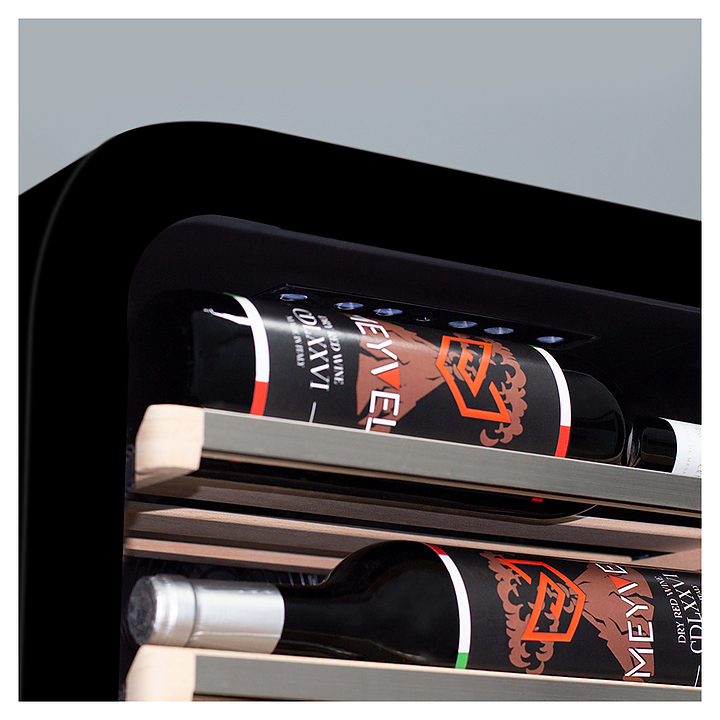 Винный шкаф MEYVEL MV34-KBF1 предназначен для демонстрации, хранения и создания оптимальных условий для сохранения всех вкусовых свойств вина в бутылках на предприятиях общественного питания, торговли, в барах, ресторанах, специализированных магазинах, частных домах или квартирах. Модель оснащена сенсорной панелью управления, электронным термостатом, утопленной ручкой и белой светодиодной подсветкой. Корпус выполнен из окрашенной в черный цвет стали, дверь - из тройного стекла с защитой от ультрафиолетовых лучей, полки - из массива бука. Особенности: