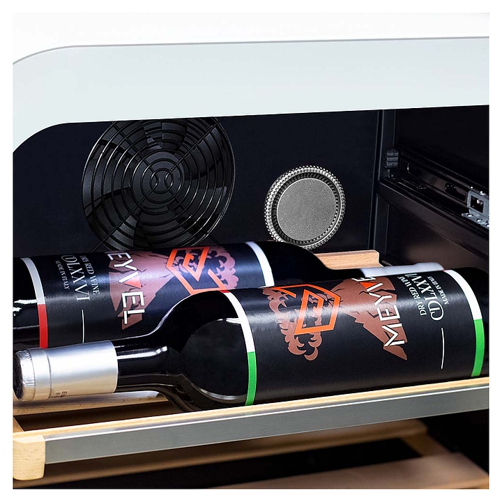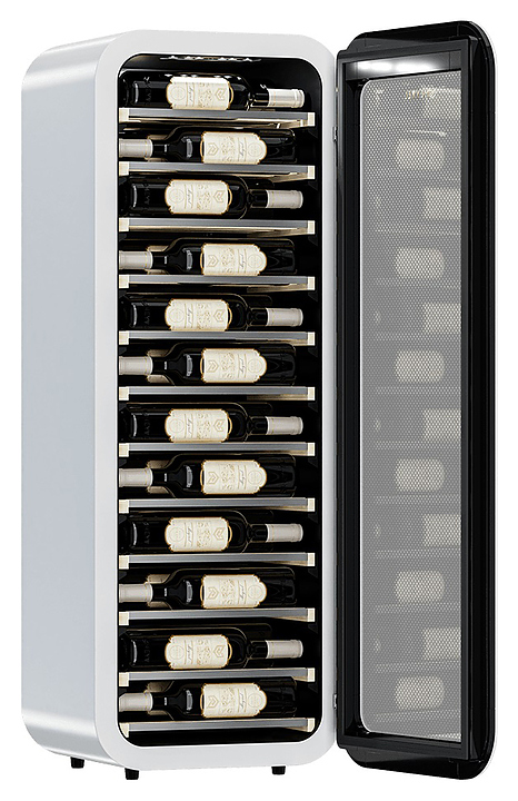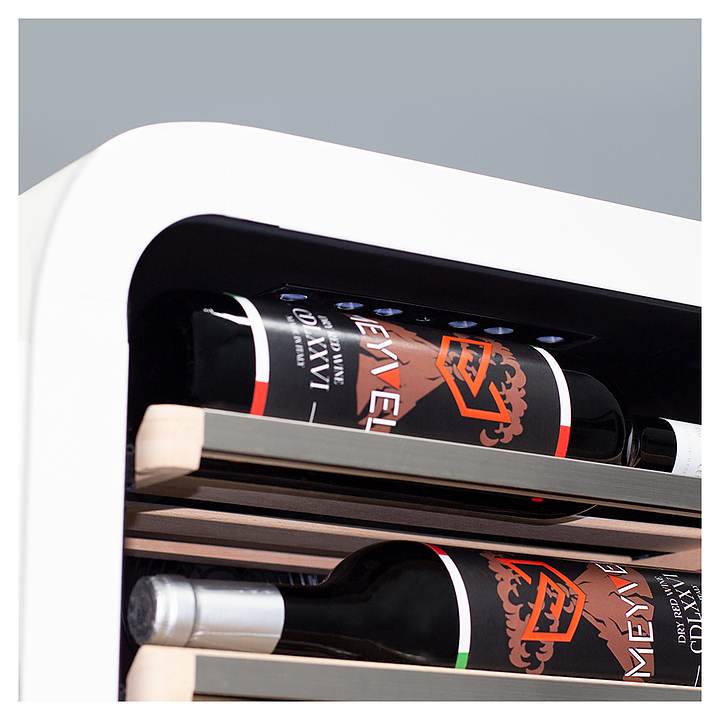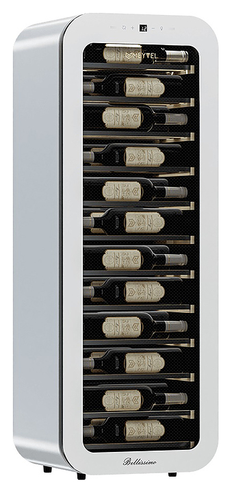 Винный шкаф MEYVEL MV34-KWF1 предназначен для демонстрации, хранения и создания оптимальных условий для сохранения всех вкусовых свойств вина в бутылках на предприятиях общественного питания, торговли, в барах, ресторанах, специализированных магазинах, частных домах или квартирах. Модель оснащена сенсорной панелью управления, электронным термостатом, утопленной ручкой и белой светодиодной подсветкой. Корпус выполнен из окрашенной в белый цвет стали, дверь - из тройного стекла с защитой от ультрафиолетовых лучей, полки - из массива бука. Особенности: