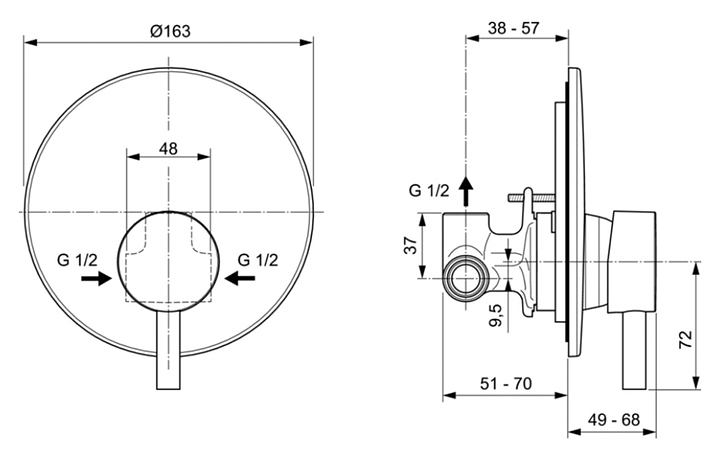 Смеситель для душа встраиваемый Ideal Standard CERALINE A6940AA комплект