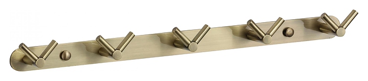 Вешалка-планка Savol S-007225C используется в ванных комнатах для размещения халатов, белья и полотенец. Элегантный аксессуар идеально дополнит дизайн любой ванной комнаты. Модель оснащена 5-ю V-крючками и монтируется на стену с помощью шурупов. Изделие выполнено из латуни, которая отличается прочностью и долговечностью. Дополнительные характеристики: