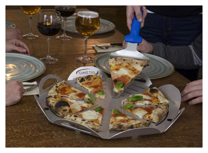 Поднос GiMetal VPFT50 используется на предприятиях пищевой промышленности, общественного питания и торговли, а также в домашних условиях для выкладки, подачи и нарезания пиццы, а также других изделий. Модель оснащена основанием в форме правильного 8-гранника и 8 бортиками в виде округлых лепестков. Изделие изготовлено из высококачественного алюминия с выполненной методом лазерной проточки перфорацией. Особенности: