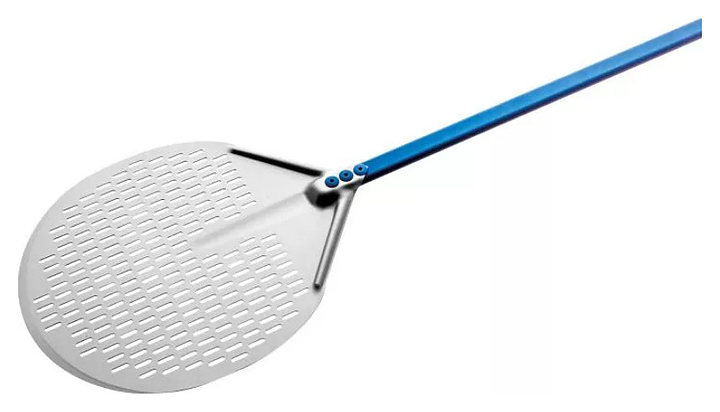 Лопата GiMetal A-37F/60 серии Azurra используется на предприятиях пищевой промышленности, общественного питания и торговли для загрузки, выгрузки и поворачивания в процессе приготовления в печи пиццы и других хлебобулочных изделий. Модель оснащена длинной рукояткой. Головка изготовлена из высококачественного нейтрально анодированного алюминия с выполненной методом лазерной проточки перфорацией, рукоятка и заклепки – из анодированного алюминия с покрытием лазурно-голубого цвета. Особенности: