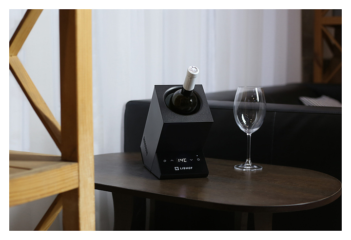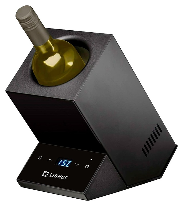Охладитель Libhof BC-1 Black предназначен для хранения предварительно охлажденного бутилированного вина различных сортов и других напитков при оптимальных условиях в барах, ресторанах, а также домашних условиях. Модель оснащена расположенной под углом холодильной камерой и панелью управления с цифровым дисплеем. Корпус выполнен из металла с покрытием черного цветаи пластика. В комплект поставки входят 2 адаптера питания (12 и 220 В) и инструкция по эксплуатации. Особенности: