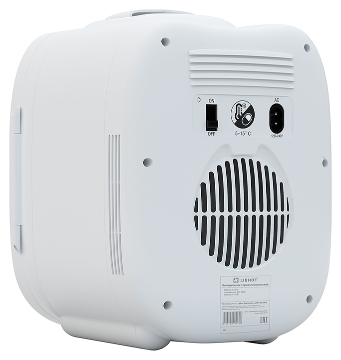 Универсальный термоэлектрический автохолодильник Libhof Libhof CT-6M предназначен для хранения и транспортировки упакованных в контейнеры и герметичную тару пищевых продуктов, лекарственных и косметических средств в легковых и грузовых автомобилях, автодомах, специальной технике, яхтах и других видах транспорта, на предприятиях питания и торговли, в офисах, гостиницах, а также домашних условиях. Модель оснащена распашной дверью с интегрированной ручкой и ползунковым выключателем на задней стенке. Внешняя облицовка корпуса выполнена из прочного пластика белого цвета, теплоизоляция – из пенополиуретана высокой плотности. В комплект поставки входят плоская полка, навесная полка, кабель питания от сети с вилкой, инструкция по эксплуатации и гарантийный талон. Особенности: